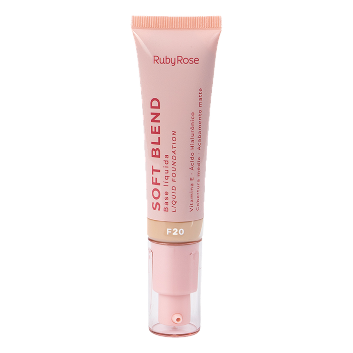 Base líquida. Ruby Rose Soft Blend oferece uma cobertura média a alta, com acabamento matte e sem pesar. A Base Ruby Rose Soft Blend é ideal para quem busca um acabamento duradouro, sem deixar a pele ressecada, e com controle de oleosidade, mantendo a pele fresca e confortável. Com uma fórmula enriquecida com Vitamina E e Ácido Hialurônico, ela oferece cuidado e hidratação para a pele, enquanto fornece uma cobertura média ideal para uniformizar o tom da pele sem pesar. Cobertura: Média Formato: Líquido Tipo de pele: Todos os tipos de pele